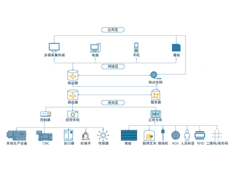 實(shí)現(xiàn)工業(yè)生產(chǎn)制造各個流程的自動化,并與控制系統(tǒng)、倉儲系統(tǒng)、設(shè)備管理系統(tǒng)之間通訊與調(diào)配等。